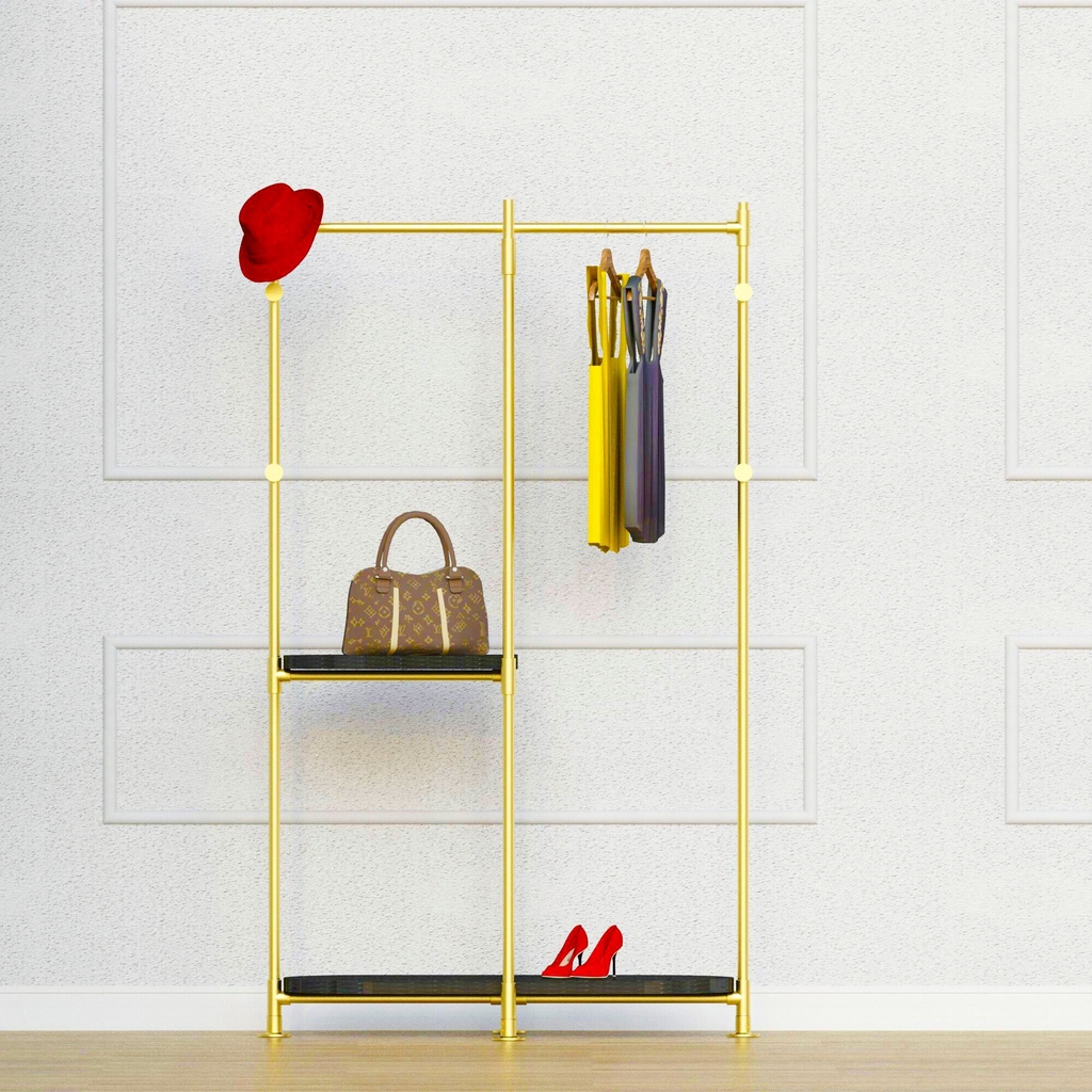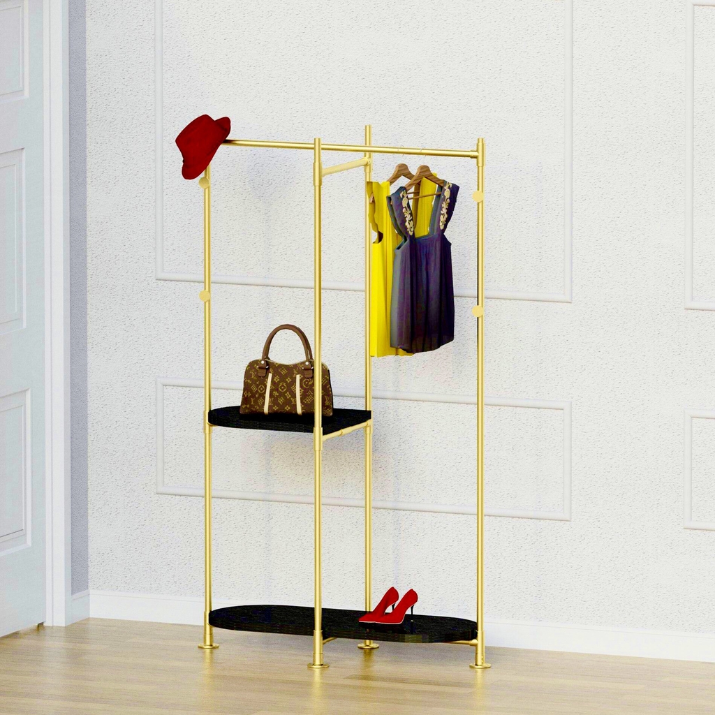 Điểm nhấn độc đáo với cơ cấu lắp ghép toàn bộ bằng khớp nối lắp ốc lục giác mang đến tổng thể một chiếc giá treo áo ấn tượng, phù hợp với không gian nội thất sang trọng, đẳng cấp.