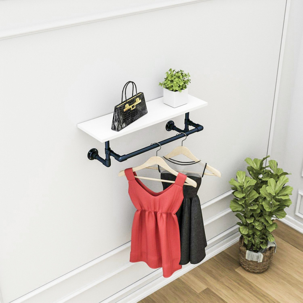 Kệ gỗ treo tường kết hợp giá treo quần áo Putney, chất liệu gỗ thông tự nhiên, Kệ gỗ decor gắn tường. Phù hợp với cả nhưng không gian nhỏ hẹp, nhắn cho shop nếu bạn cần tư vấn hoặc thay đổi về kích thước