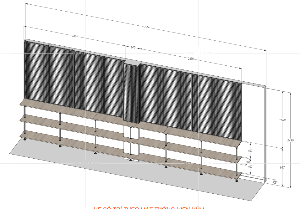 - Kích thước: Cao 2500mm * Dài 5200mm * Rộng 300mm